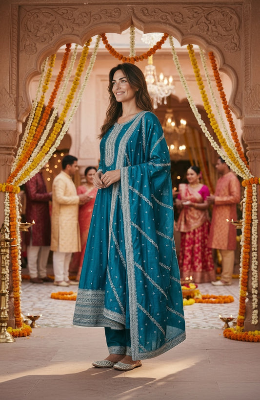 Baby Pink & Light Blue color contrast fully both side work embroidered & hand work Lehenga