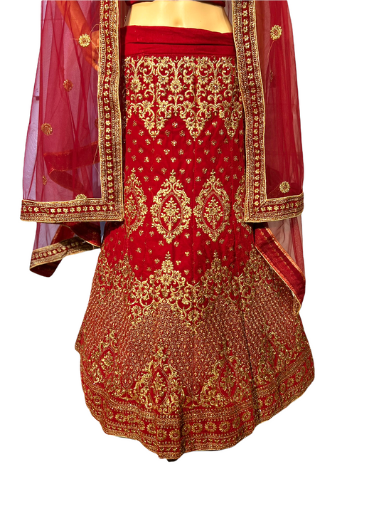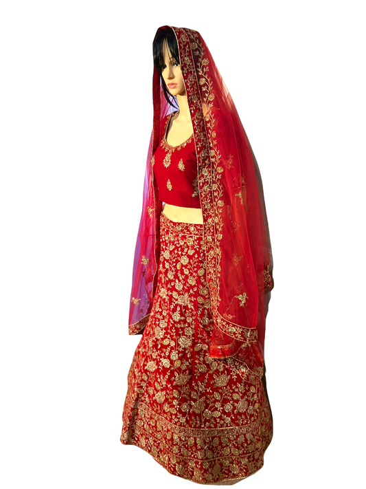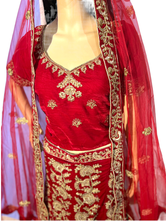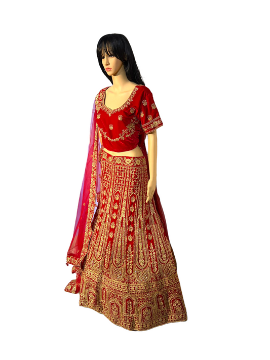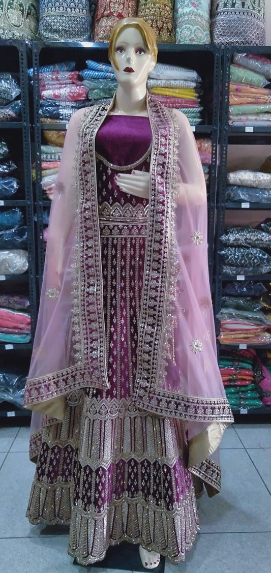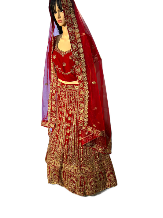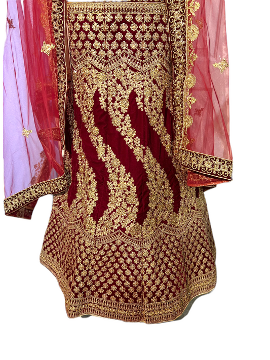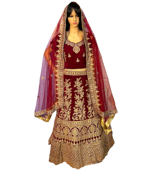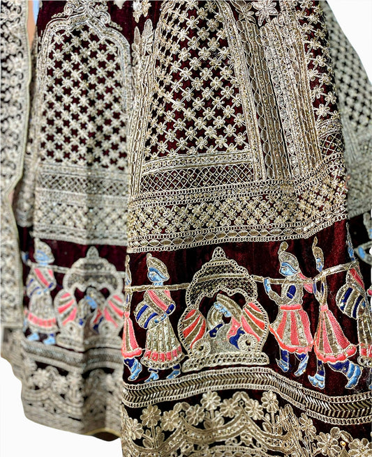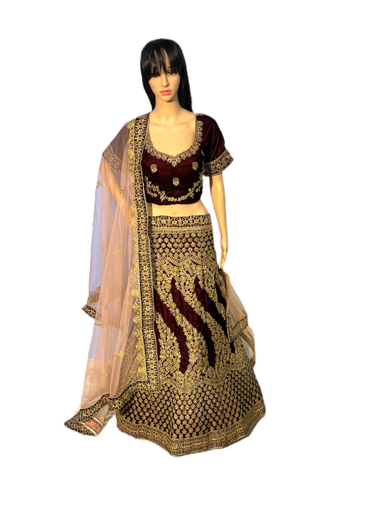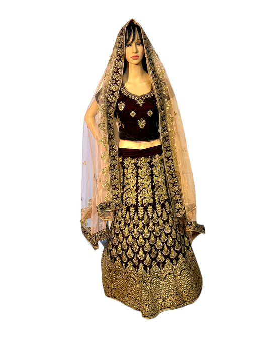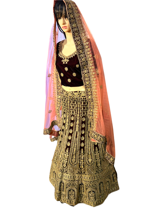Velvet Coffee color Bridal Lehnga with Peach color Dupata