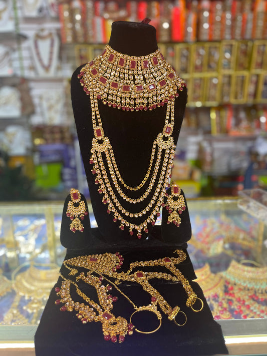 Heavy Stone Studded Mehroon & Gold Bridal Jewelary Set