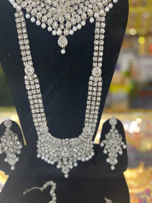 Silver Stone Studded Bridal Jewelary Set