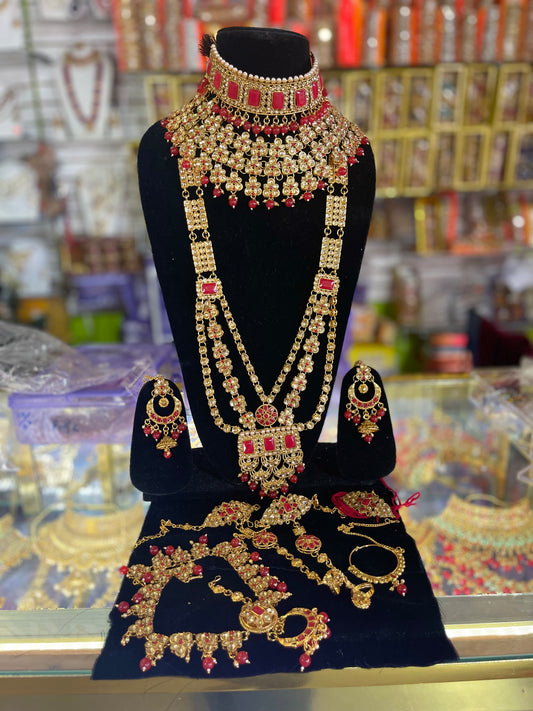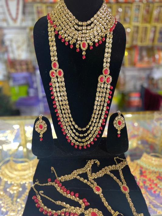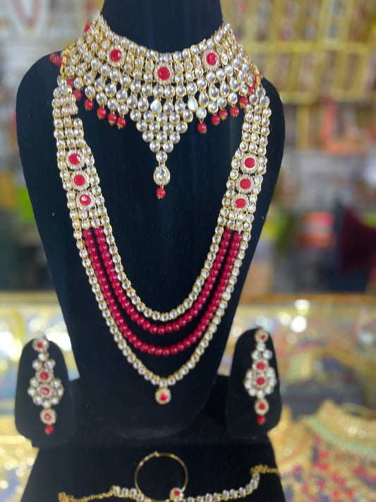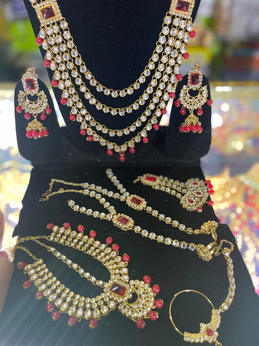 stone studded Kundan Red & Gold Bridal set