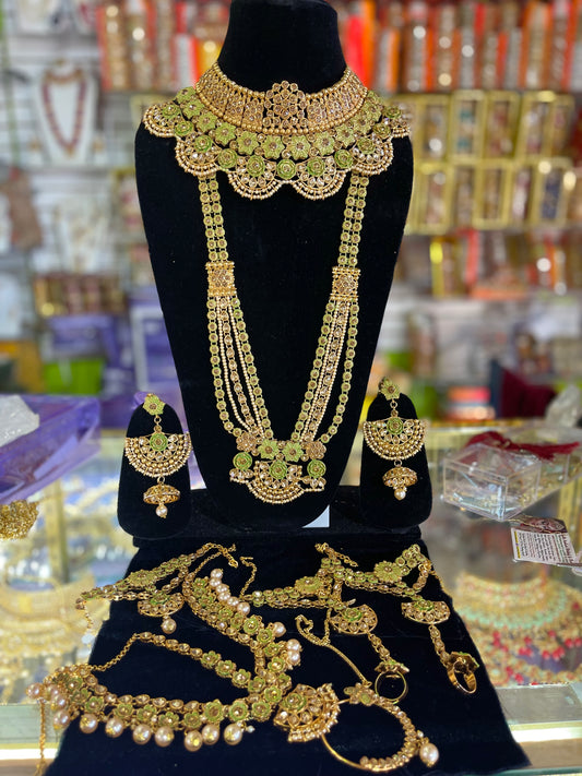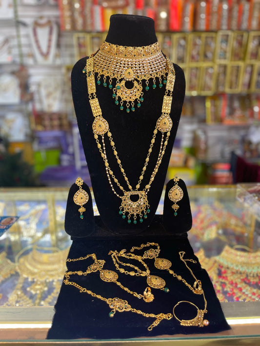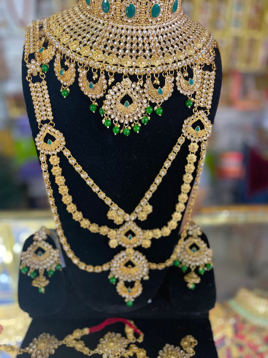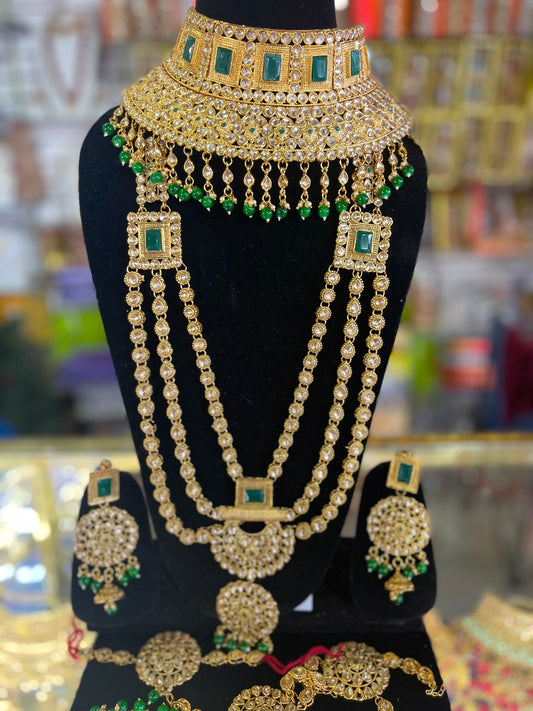 stone studded Kundan Green & Gold Bridal set