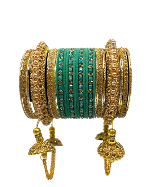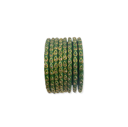 Green color stone studded bangles