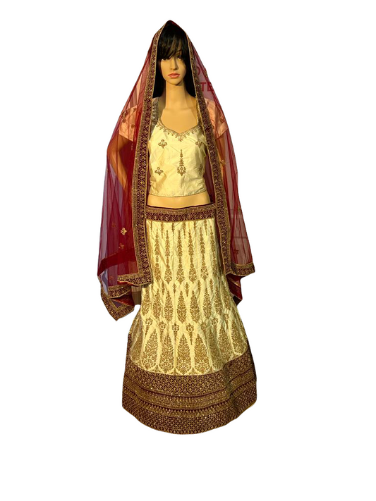 Velvet Coffee color Bridal Lehnga with Peach color Dupata